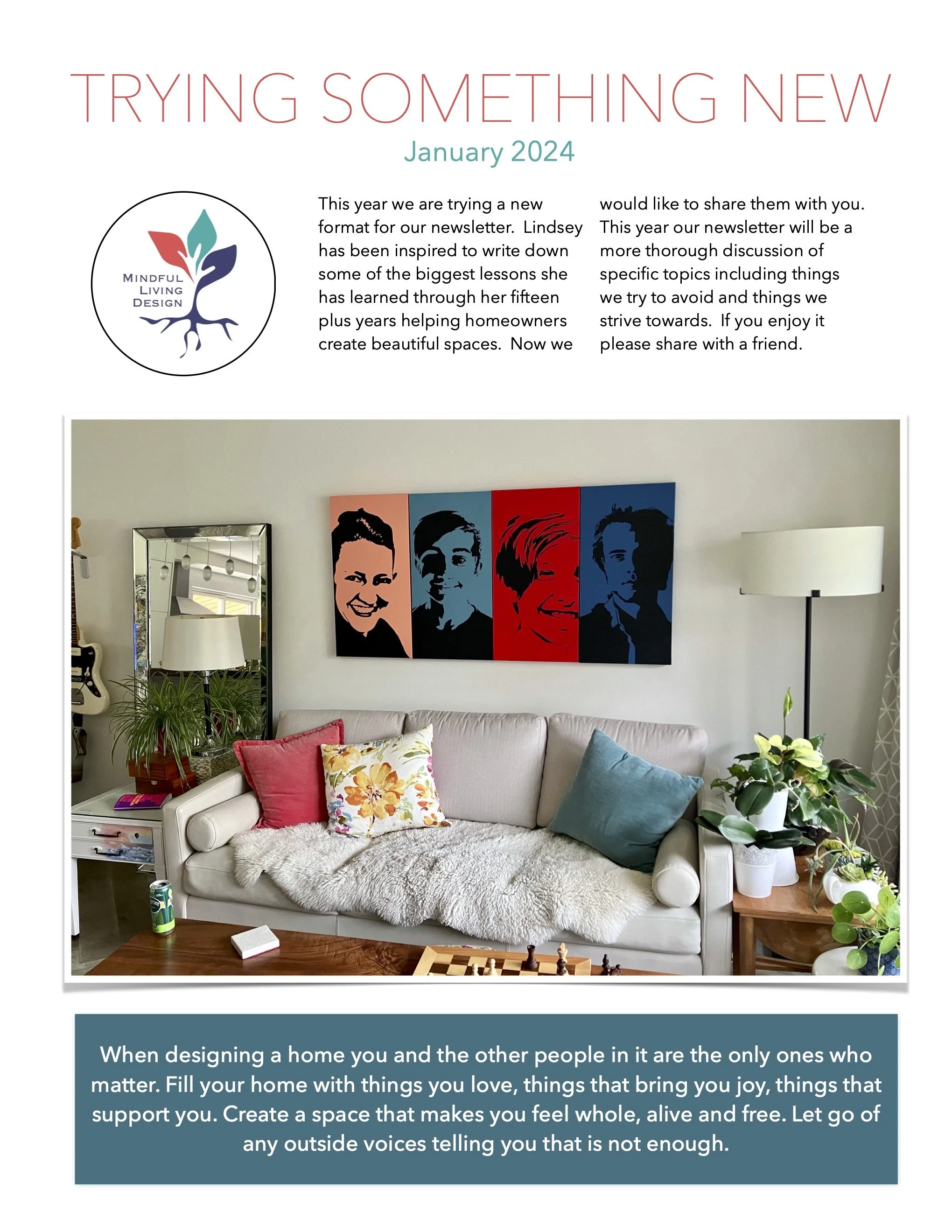 Trying Something New Join our newsletter Sign up with your email address to receive our newsletter. First Name Last Name Email Address Sign Up We respect your privacy. Thank you for joining our newsletter. We intend to send updates bi weekly or monthly, depending on life. If you have any questions please reach out. mindfullivingdesign@gmail.com Mindful Living DesignJanuary 12, 2024 Facebook0 Twitter Tumblr 0 Likes
